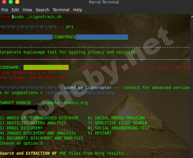 Ищет документы,фото-файлы,ссылки,почту и делает анализ на содержание в этих файлах метаданных(кроме почты,естественно).