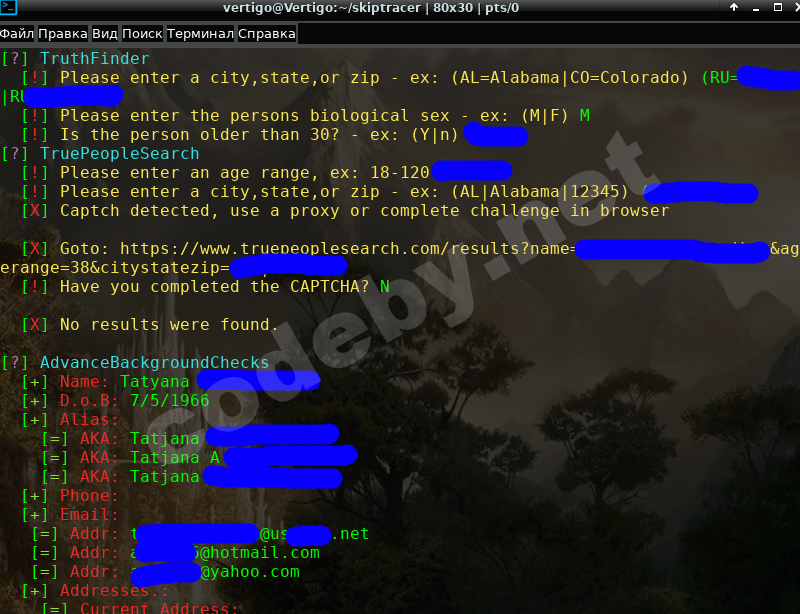 Статья Скрипт для поиска персональной информации skiptracer