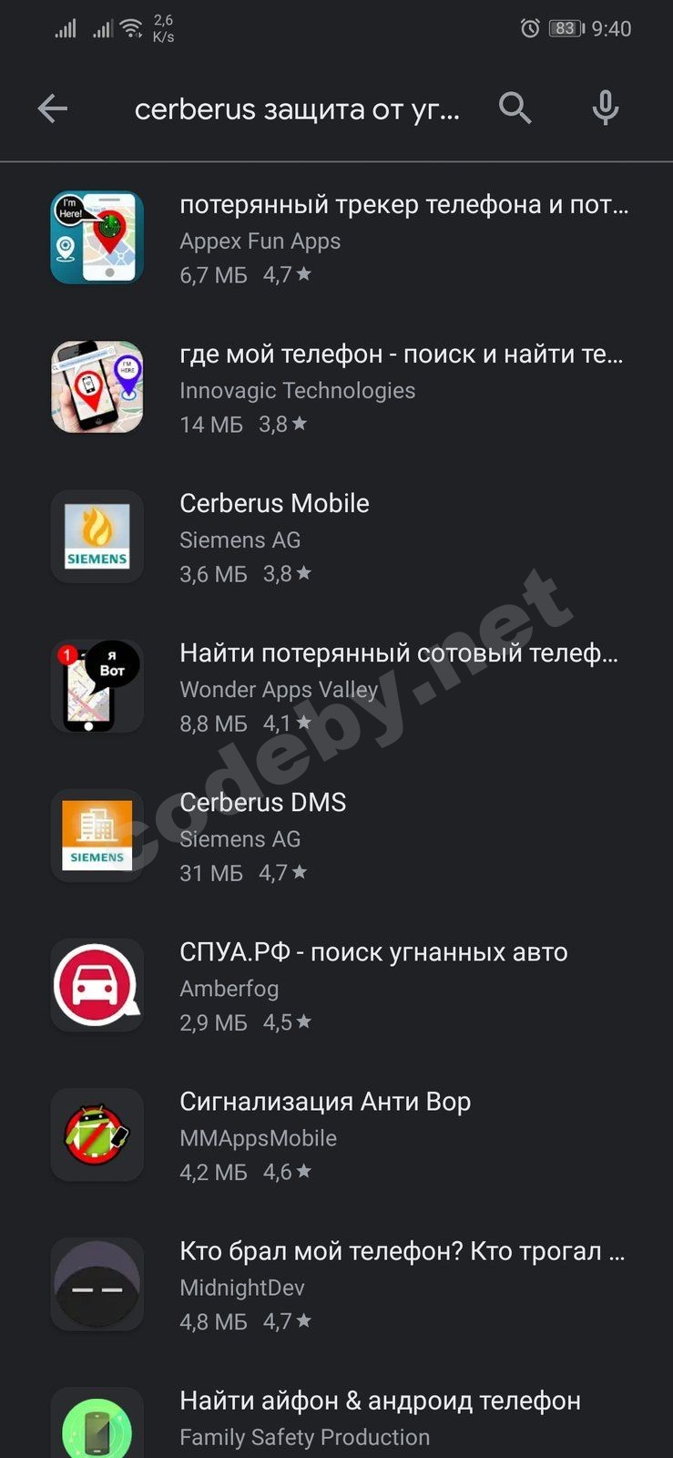 1. Первое, что нам необходимо сделать это установить приложение. Переходим в магазин Play Market и скачиваем приложение - Cerberus для защиты от угона. P.S Установочный APK весит всего 4,79 мб.