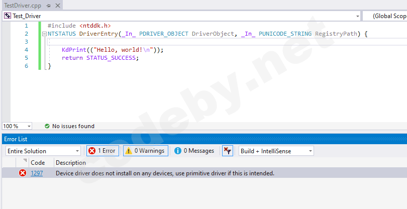 Download the Windows Driver Kit (WDK) - Windows driversВ конце установки вам будет предложено установить расширение для Visual Studio. Обязательно установите его!