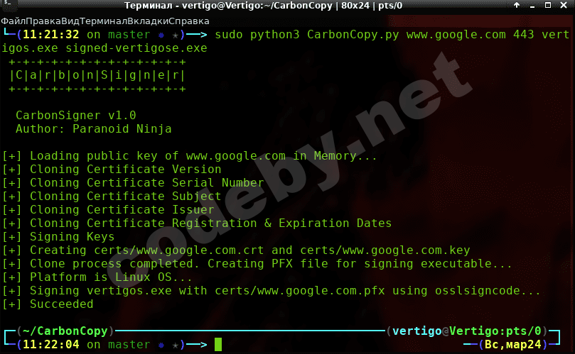 3) Запускаете CarbonCopy:# python3 CarbonCopy.py www.ресурс_для_которого_готовите_сертификат №порта назв_файла signed-назв_файла