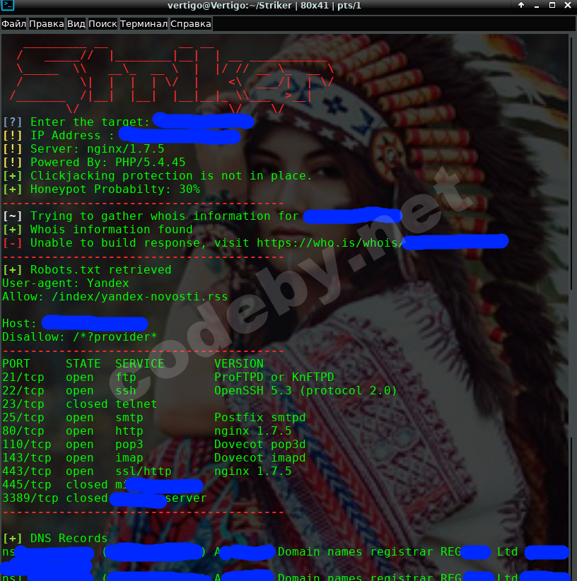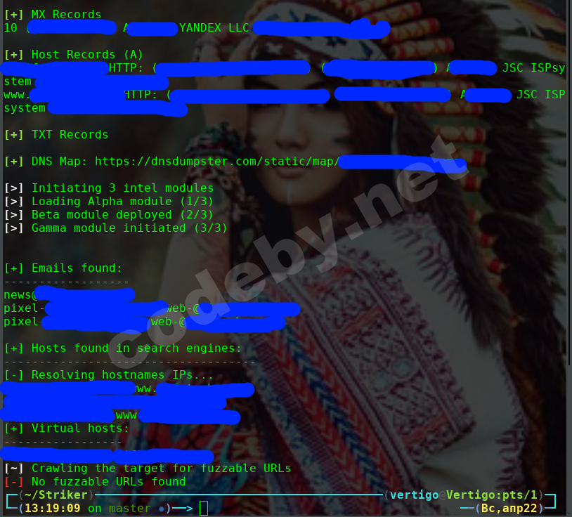 За счёт встроенного модуля обхода защиты Cloudflare , Striker достаёт очень полезную информацию. Несмотря на определение ,что это инструмент нахождения уязвимостей , всё же больше он разведывательный. И его функционал выявления уязвимостей сильно ограничен конечно. Проведя несколько тестов , я не видел ,чтобы он что-то находил из этой задачи.