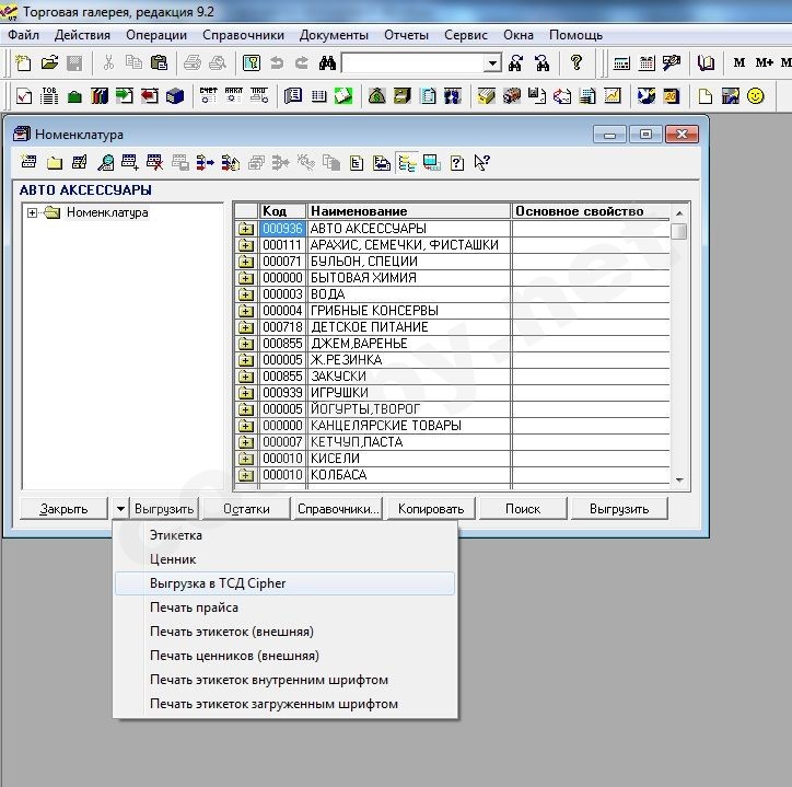 Но при нажатии кнопки "Выгрузить в ТСД Cipher" в "Справочники.Номенклатура" вылезает следующая ошибка: