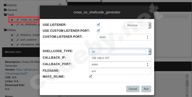 Срабатывает быстро и корректно, теперь попробуем внедрить полезную нагрузку на целевой хост:
