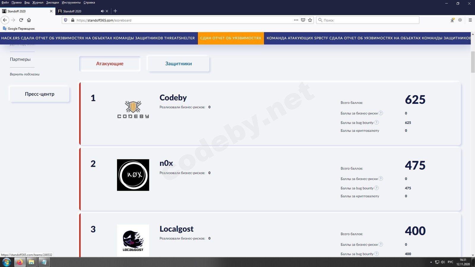 Судя по всему, результаты подведены. Наши поздравления команде Codeby! Быть лучшими - большой труд.