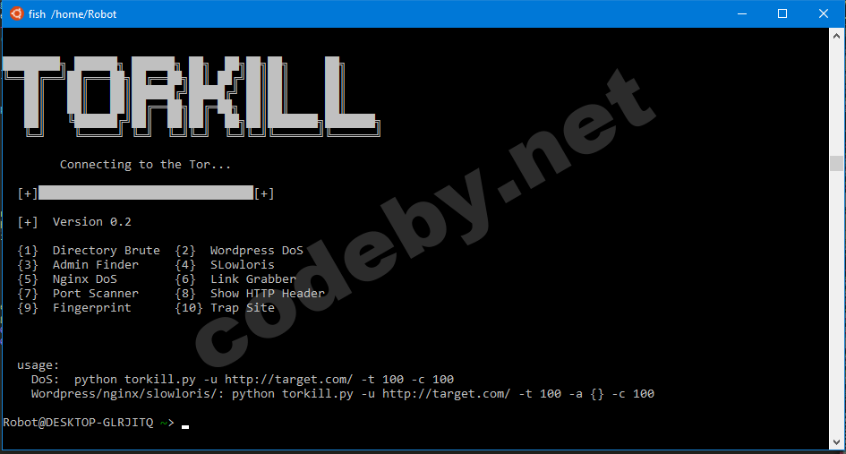 Основная цель TorKill - это сломать или взломать onion сайт. Я рекомендую использовать этот инструмент с onionscan, на форуме уже есть статья, от одного хорошего человека. Есть несколько легких вариантов сдеадонить сайт. Первый - это его положить, тогда в адресной строке мы увидим его настоящий ip. Второй - это найти незащищенный ssh отпечаток и использовать Shodan или Censys. Инструмент может - это все, включая создание сайта ловушки.