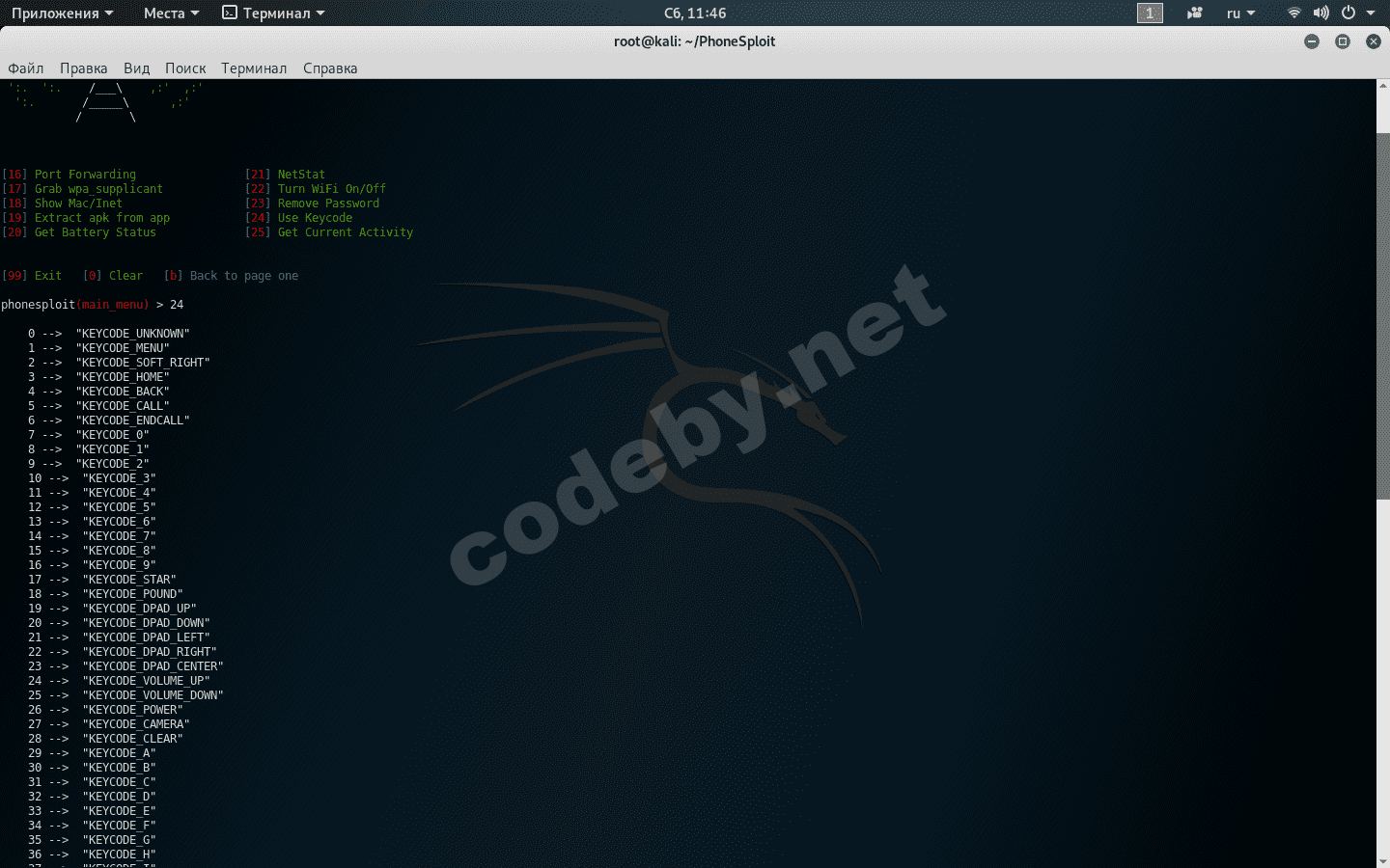 [19] Extract apk from app           [24] Use Keycode