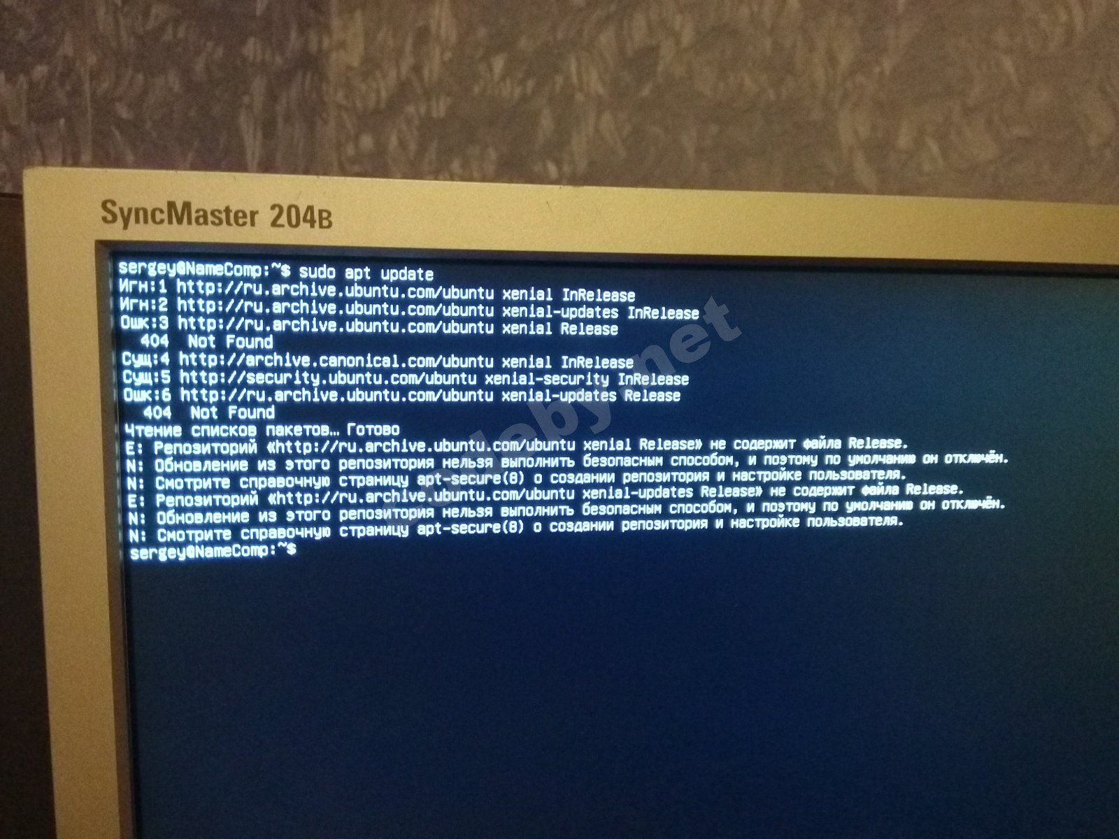 Пишет репозиторий https://ru.archive.ubuntu.com/ubuntu xenial Release не содержит файл release