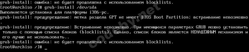 # grub-install /dev/sdx -- ВНИМАНИЕ диск без номера !!!!!