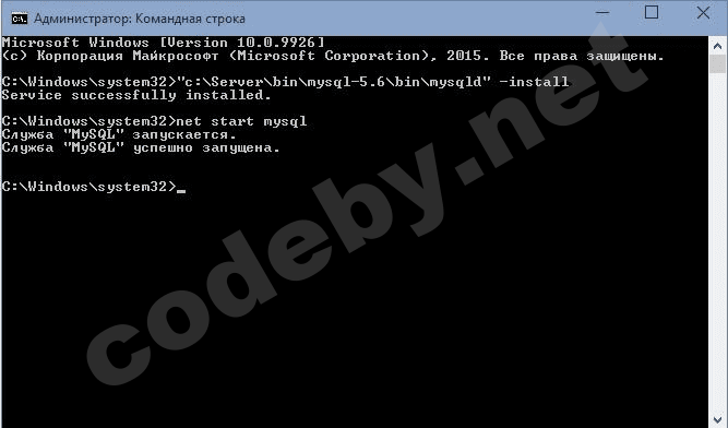 Настройка завершена, но нужно ещё выполнить установку, для этого открываем командную строку от имени администратора и копируем туда