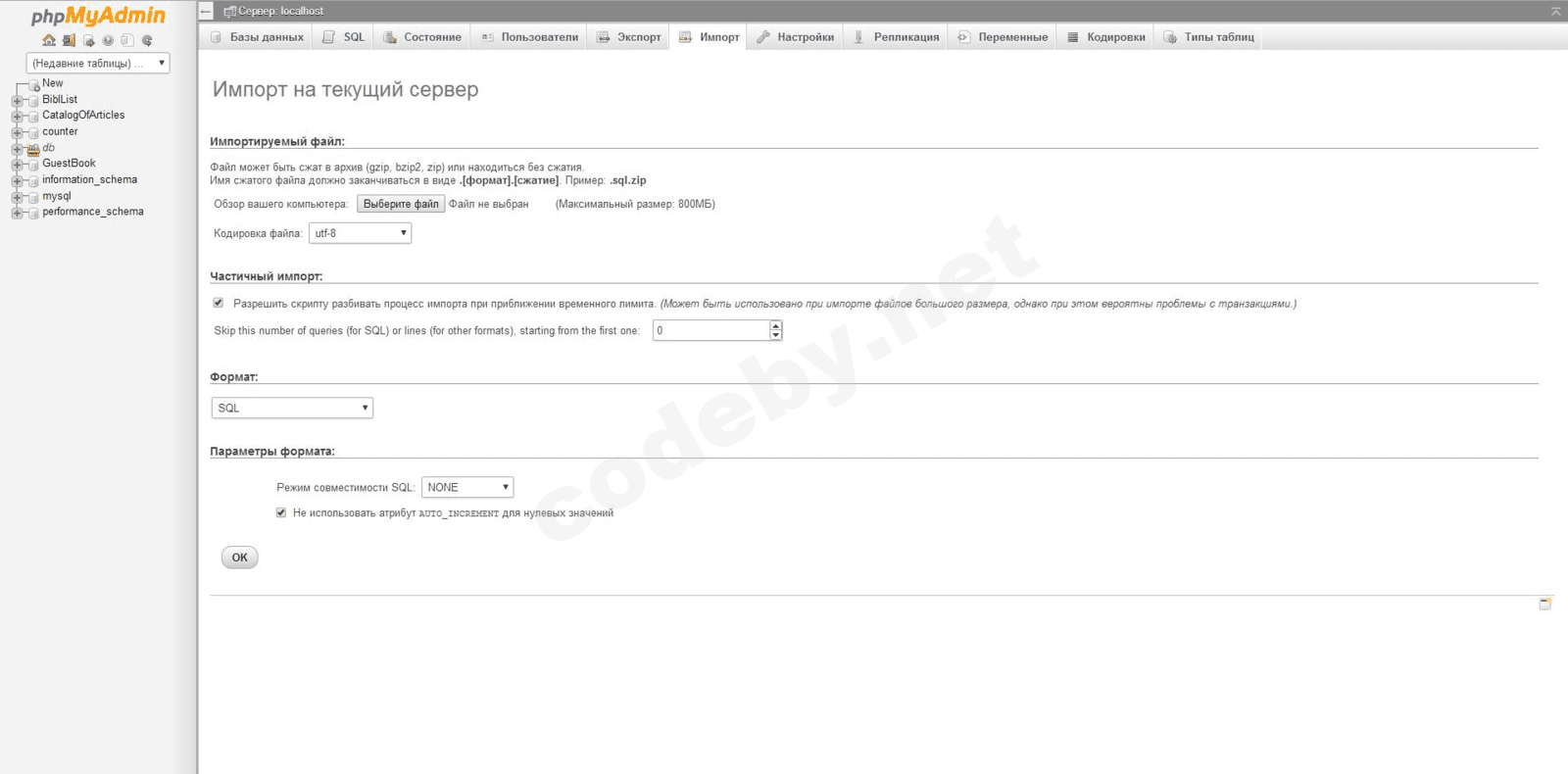 9. Дополнительная настройка phpMyAdmin