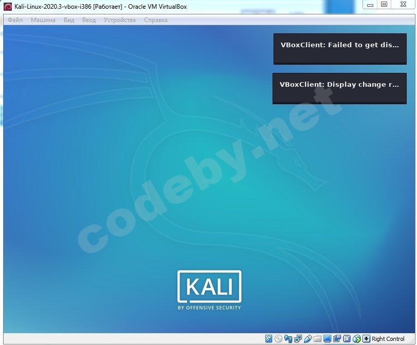 после установки kali-linux-2020-3-installer-i386-iso, kali-linux-2020-3-live-i386-iso черный экран после логина и пароля. после установки kali-linux-2020-3-vbox-i386-ova заставка с надписью