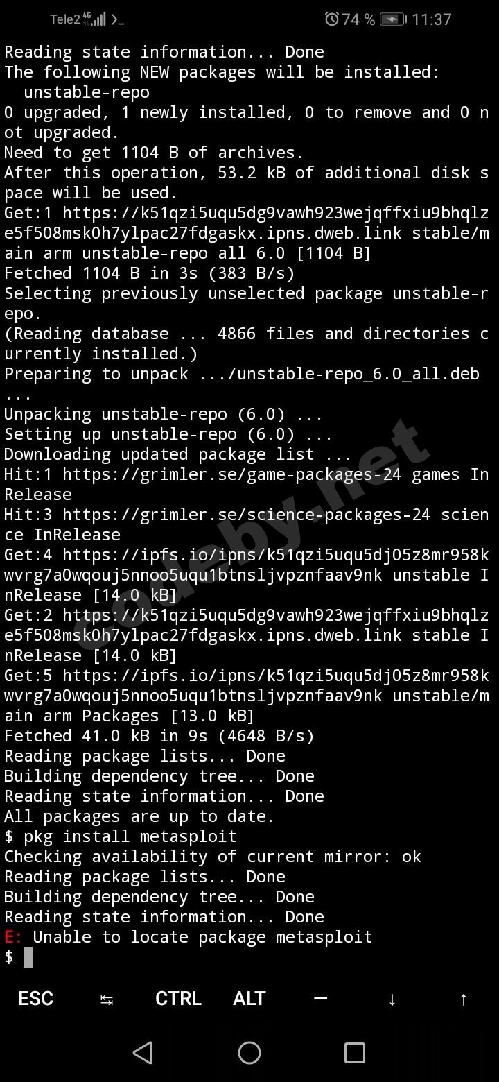 pkg install metasploitПроцесс установки занимает около 20 минут.