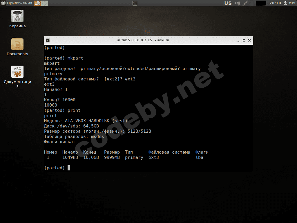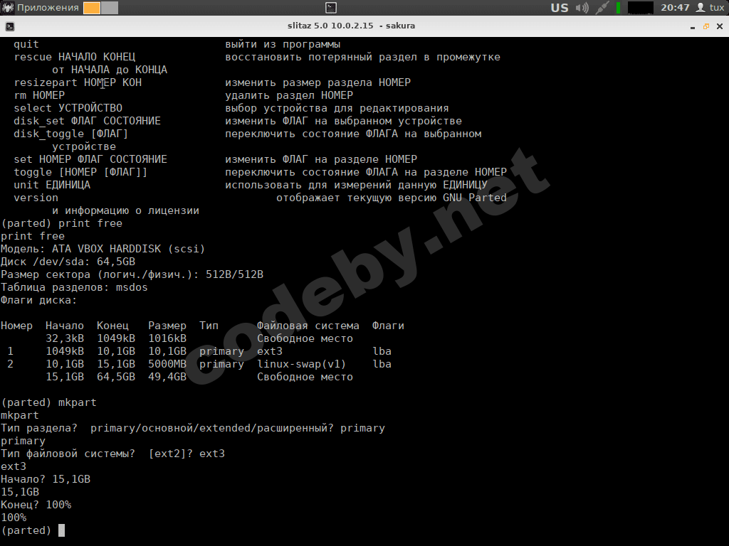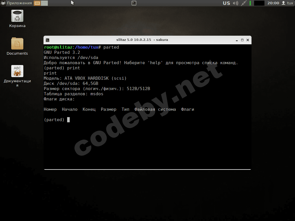 Разметка диска используя parted