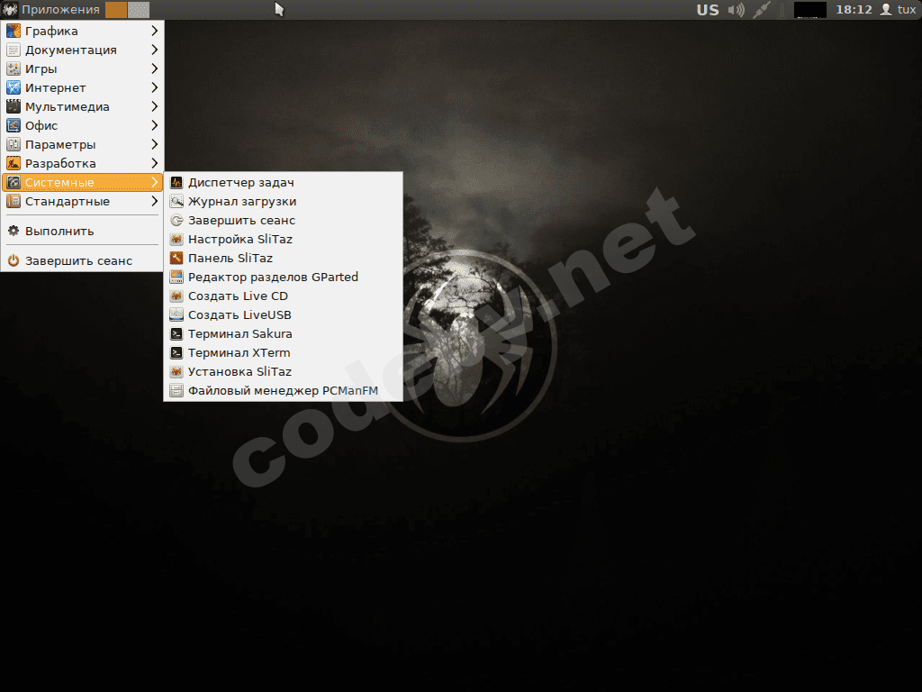 Что и говорить, SliTaz - очень уютная система. Разработчики постарались сделать всё очень удобно, компактно и "лампово". Чего стоит один только рабочий стол "чёрные сосны на фоне чёрного грозового неба"! Так и хочется раскинуть палаточку, разжечь костер пожарче и разлить по кружкам грог с друзьями.