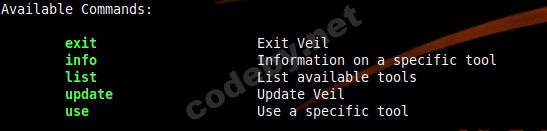 usage: Veil.py [--update] [--version] [--list-tools] [-t Veil-Framework]