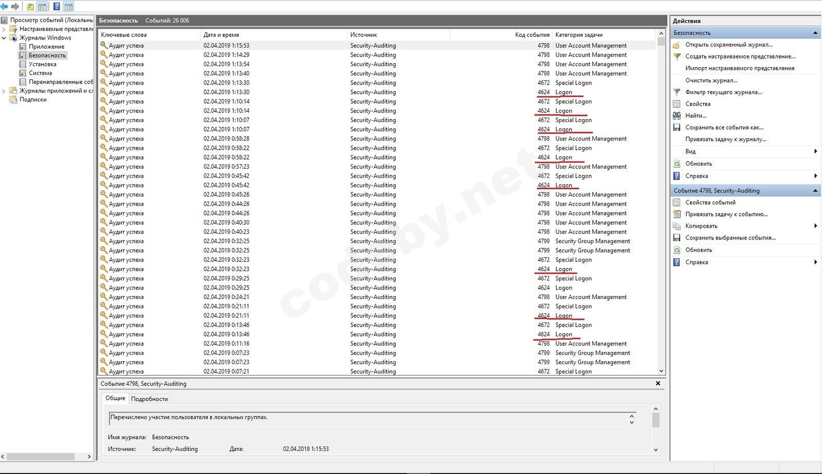 Спасибо, просматривая свой журнал мне не удалось понять откуда у меня столько событий Logon и Special Logon, из учетной записи я не выходил, но события периодически генерируются.