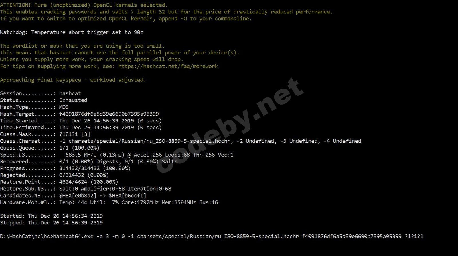 Я буду использовать команду oclHashcat, т. к. я использую AMD GPU. Если вы используете NVIDIA GPU, то для вас cudahashcat.