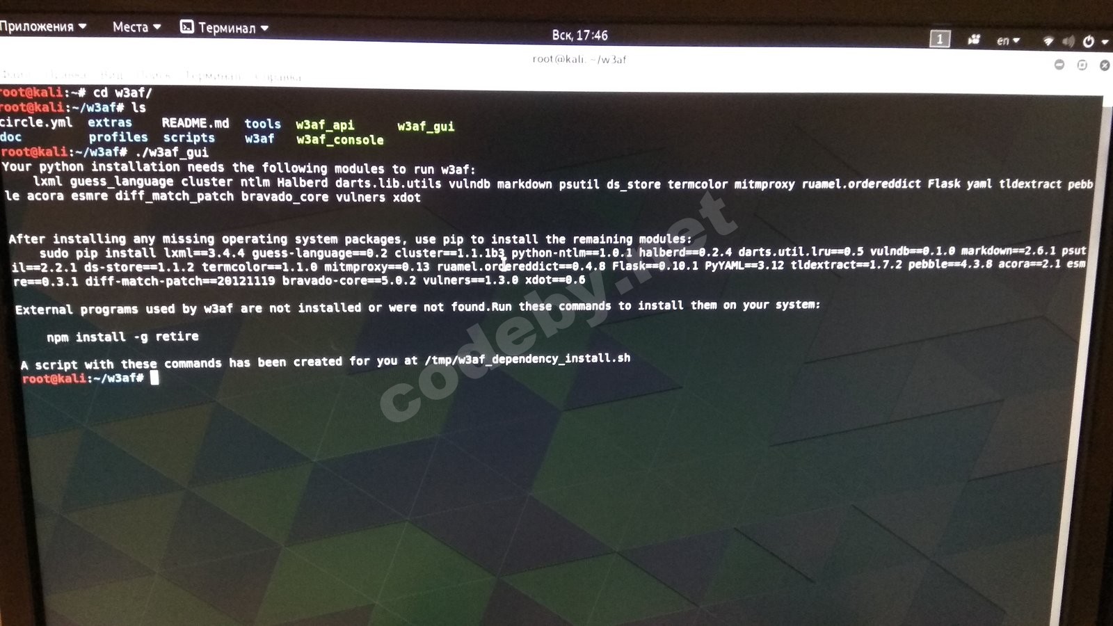 Установив w3af мне он сказал что нужно перейти в директорию и запустить
