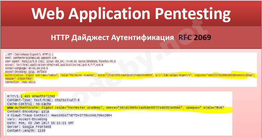 И так давайте глянем на запрос ответ сервера на HTTP Дайджест аутентификацию: