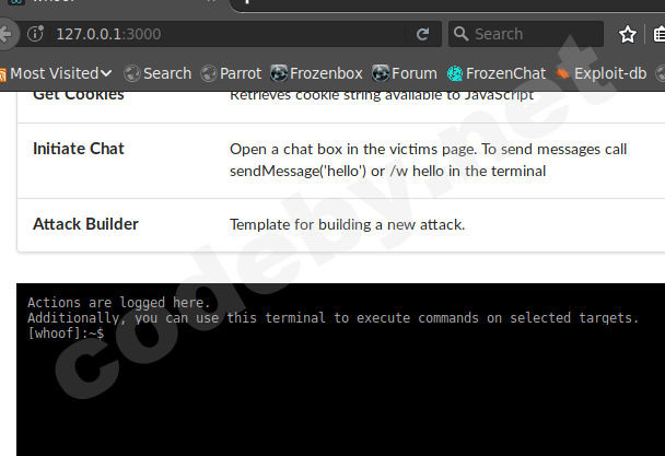 Для тестирования и демонстрации возможностей whoof , имеется страница с http-протоколом и адресом localhost:8080/victim-example.html