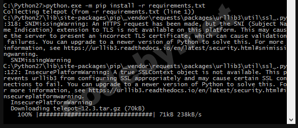 > python.exe –m pip install –r requirements.txt (Копируем перед этим из папки с RAT файл requirements.txt в папку c Python)