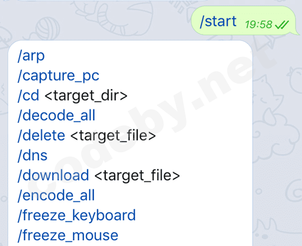 Этот RAT преодолевает эти проблемы, используя API-интерфейс Telegram.