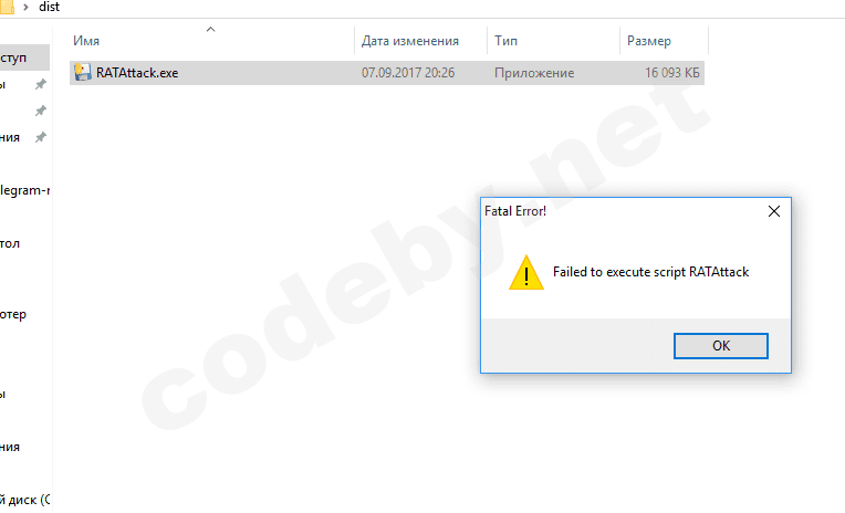 Выполняем `pyinstaller --onefile --noconsole C: \ path \ to \ RATAttack.py`. Вы также можете передать `--icon = <path \ to \ icon.ico>` для использования любого пользовательского значка.