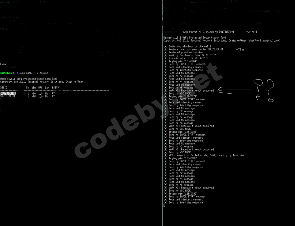 Привет всем, пытаюсь проверить точку по wps, нагуглил статью в которой описывается как работает это подключение на скриншоте видно что М5 пакет идет после того как будет подобрана первая часть пина, в моем же случае это пакет идет сразу и не важно какая первая часть пина, может кто сталкивался с таким. поясните плз.
