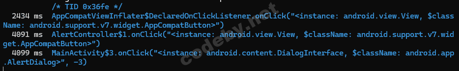 frida-trace -U -F -i "*!onClick" (U - usb-устройство, F - текущее открытое приложение, j - паттерн вида class!method). Пробуем:И получаем такую хренотень. Гугл на такую ошибку ничего дельного не выдаёт, что же делать? После получаса активного поиска причины этой ошибки и листинга логов (
