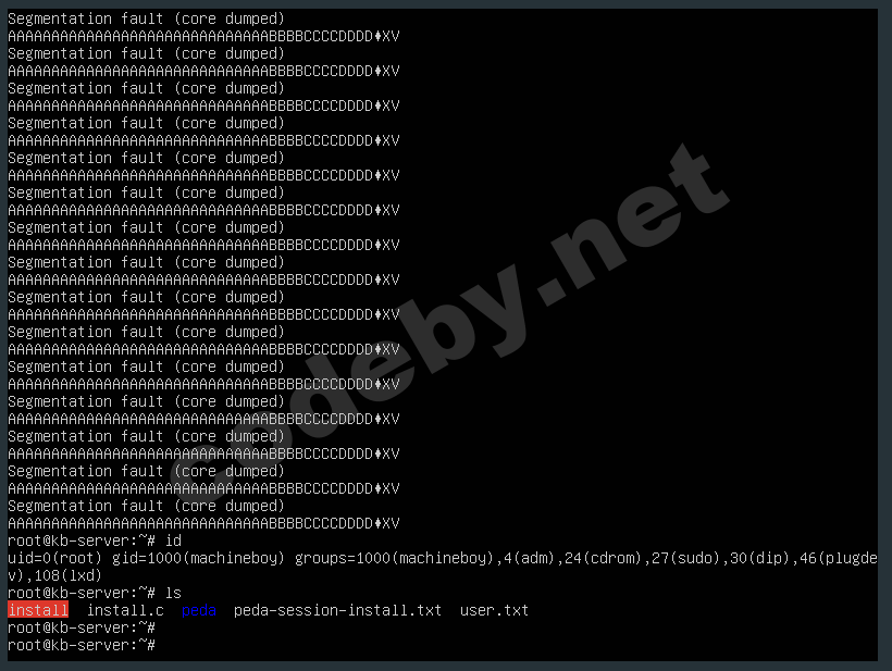char buff[30];) мне хватает ума понять, что тут явная эксплуатация уязвимости с переполнением буфера, однако я не разбираюсь в этом от слова "совсем", а вникать в эту тему долго (я не забиваю на это совсем и после написания статьи пойду учить данную тему, уже учил бы, если бы не нашел путь проще), кстати, если кто-то напишет в комментах, как проэксплуатировать данную уязвимость (конкретно в этом случае), будет очень круто. Итак, как я уже сказал, есть способ проще (для меня) повысить привилегии, нежели ломать чей-то код, используя команду ~$ idВидно, что пользователь "machineboy" входит в группу lxd.