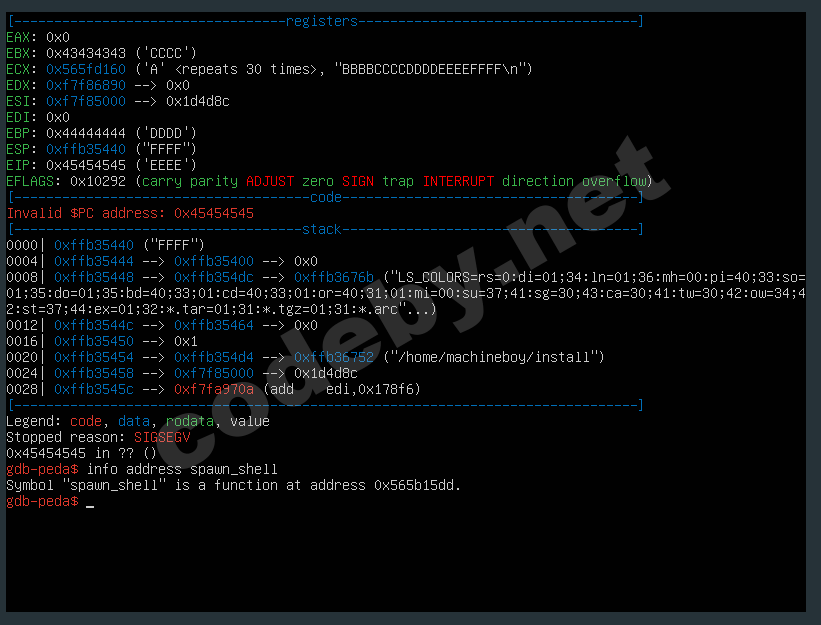 Сходу сразу же видно файлы "install", его исходник "install.c" и "peda" - это расширение для отладчика GDB, которое добавляет кучу дополнительных функций. Нас в первую очередь интересует явно самописный файл install.c следующего содержания: