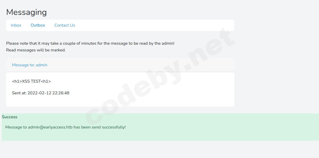 echo '10.10.11.110 earlyaccess.htb' >> /etc/hostsXSS уязвимость в сообщении: