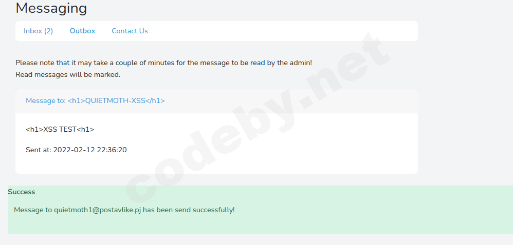 <h1>QUIETMOTH-XSS</h1>После удачной смены нашего ника, попробуем отправить то же самое письмо ещё раз: