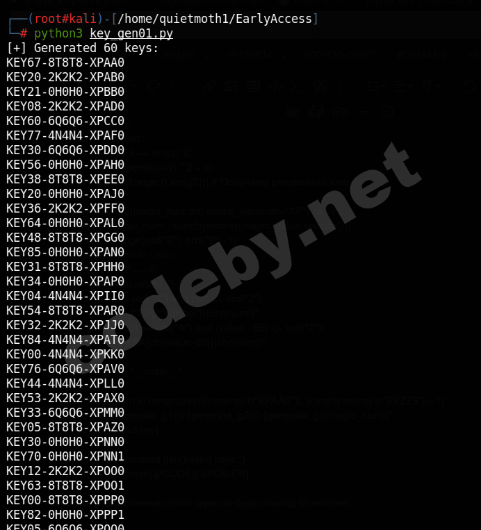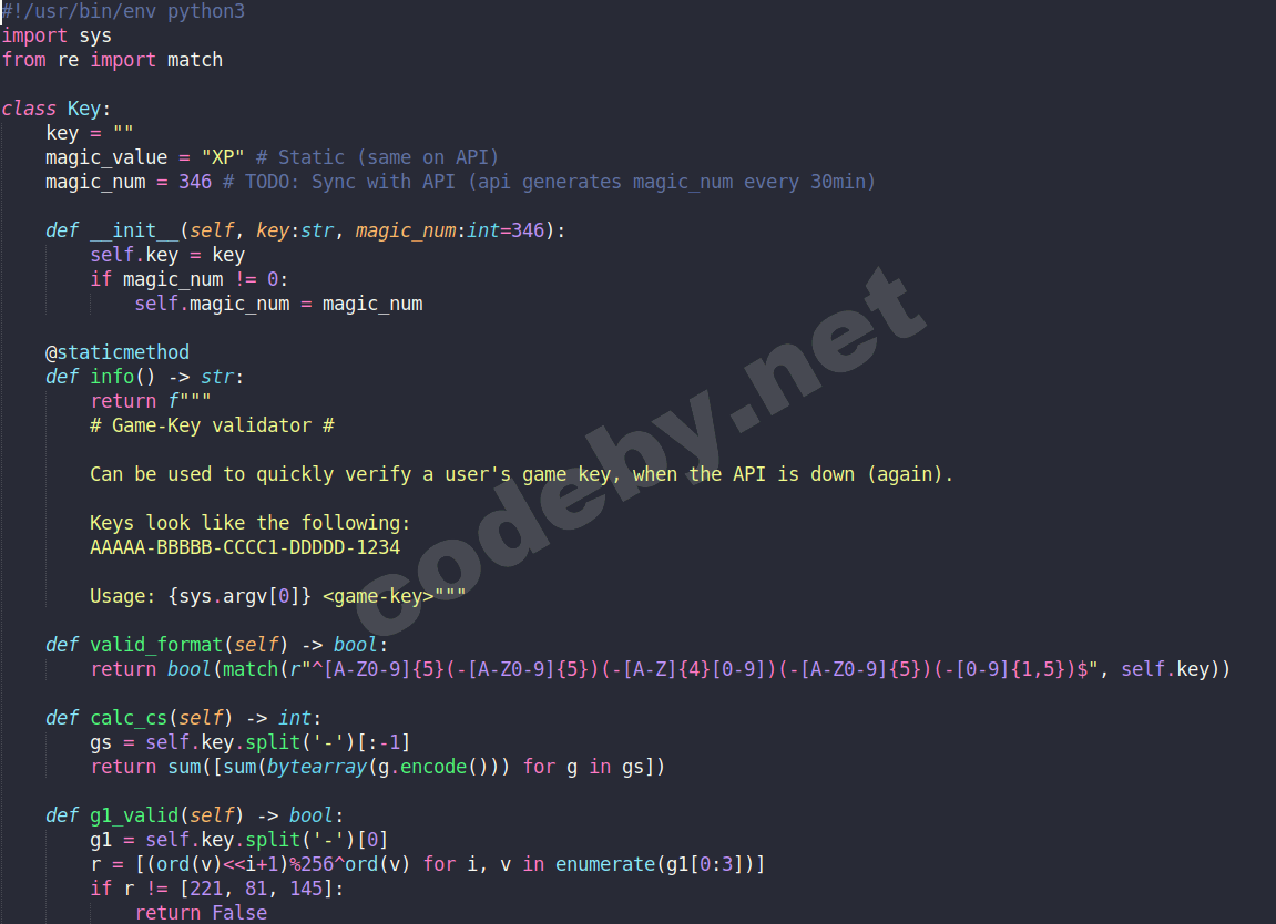 И вытащив единственный файл из бэкапа под названием - validate.py, мы можем написать скрипт который будет создавать ключ, который и обойдет эту валидацию.