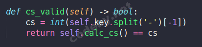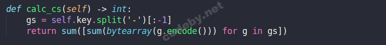 Третья функция calc_cs - берет полученный ключ и разбивает его на отдельные группы, которые разделяются знаком - .