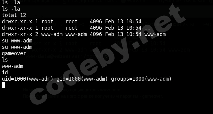 Попробуем зайти на него с ранее полученым паролем - gameover.