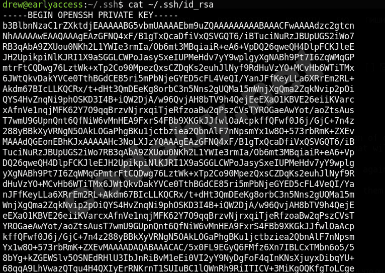 Вывод ключа конечно не очень красивый, но подретактировав его, мы получаем полноценный id_rsa файл!