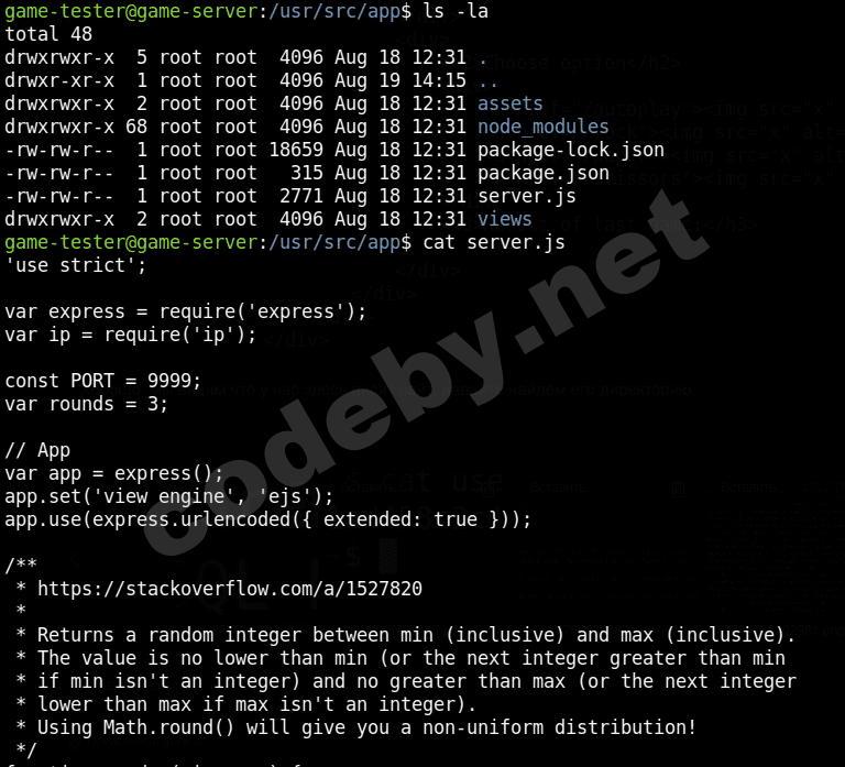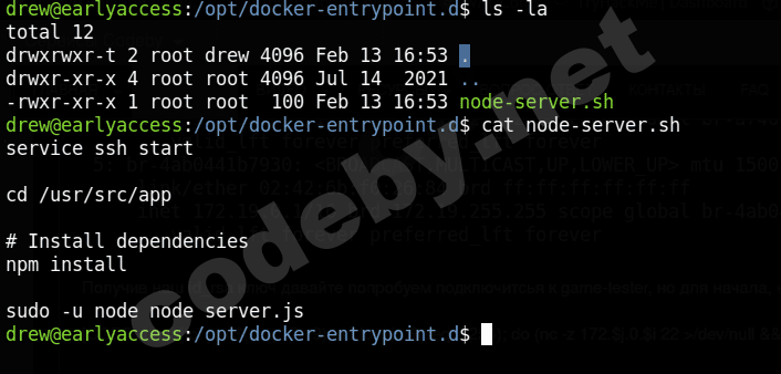 Мы узнали ip адрес этого игрового сервера, но при поиске интересной информации на сервере, я наткнулся на файл /opt/docker-entrypoint.d/node-server.sh: