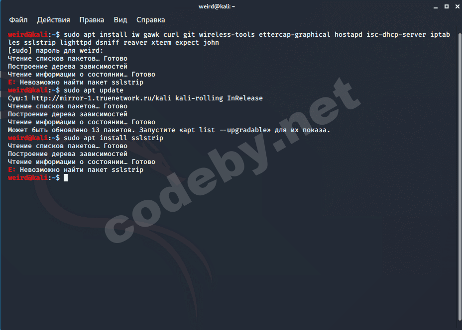 Увидел, что пакетов sslstrip нет. Натурально я пошел скачивать эти пакеты: