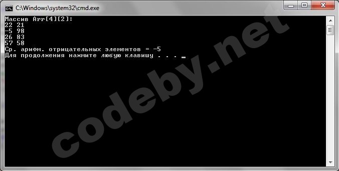Задача: 2-мерный массив<int>, ср. арифм. всех отриц. элементов