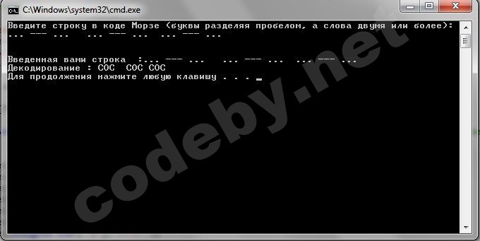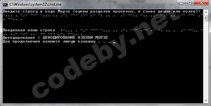 Вводится код Морзе,нужно декодировать этот код на английские буквы.Посмотрел на Азбуку Морзе с Википедии.