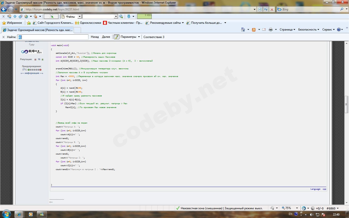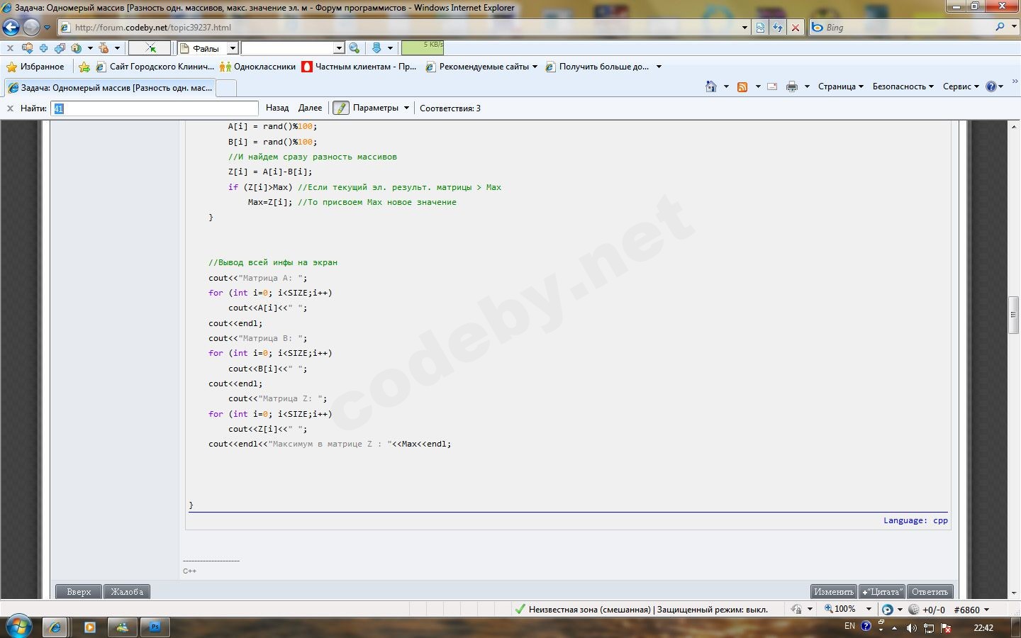 Задача: Одномерый массив [Разность одн. массивов, макс. значение эл. м