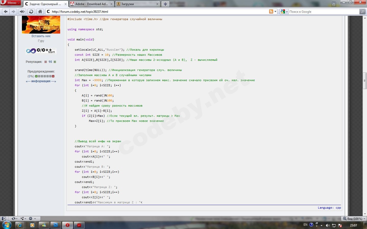 cout<<"Матрица Z: ";