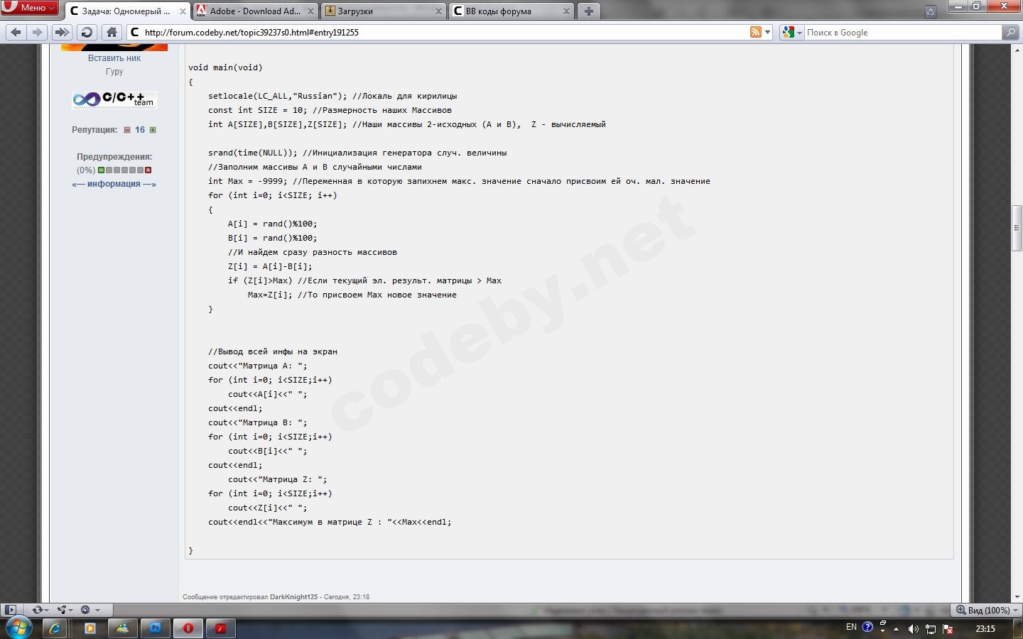 cout<<endl<<"Максимум в матрице Z : "<< Max<< endl;
