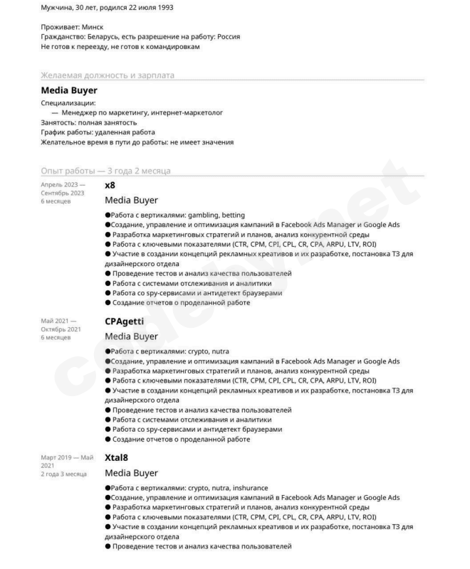 Задача по OSINT. Найти резюме на площадках по поиску работы